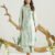 This elegant dress features intricate ada work center of the shirt, showcasing beautiful floral patterns crafted with white and green china cut dana. Further enhancing the design is dabka work in two complementary colors, adding depth and texture. The sleeves are adorned with delicate moti work, creating a truly exquisite ensemble.The sleeves of this dress are a standout feature, designed with a unique cut-out detail along the outer arm. These openings are beautifully embellished with cascades of small white crystal that drape gracefully, creating a sophisticated and eye-catching effect.