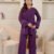 A stylish co-ord set in a rich shade of purple is fashioned from delicate georgette fabric, offering a fluid and elegant silhouette. The top and trousers are adorned with tasteful lace detailing, adding a subtle touch of sophistication and charm to the overall design.